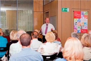 (sk) Kein Sitzplatz blieb frei in der Sparkassenfiliale St. Ilgen, und alle kamen sie, um „Heiteres und Weiteres“ von Dieter Degreif zu hören. Kundenberaterin Patricia Schäfer freute sich über so viele Zuhörer und erklärte: „Wir wollten, während der Erlebniswochen „Faszination Sparkasse“, etwas Munteres und Anspruchsvolles aus der Region bieten“. Genau das hatte man mit Dieter Degreifs Programm „Heiteres und Weiteres“ gefunden.