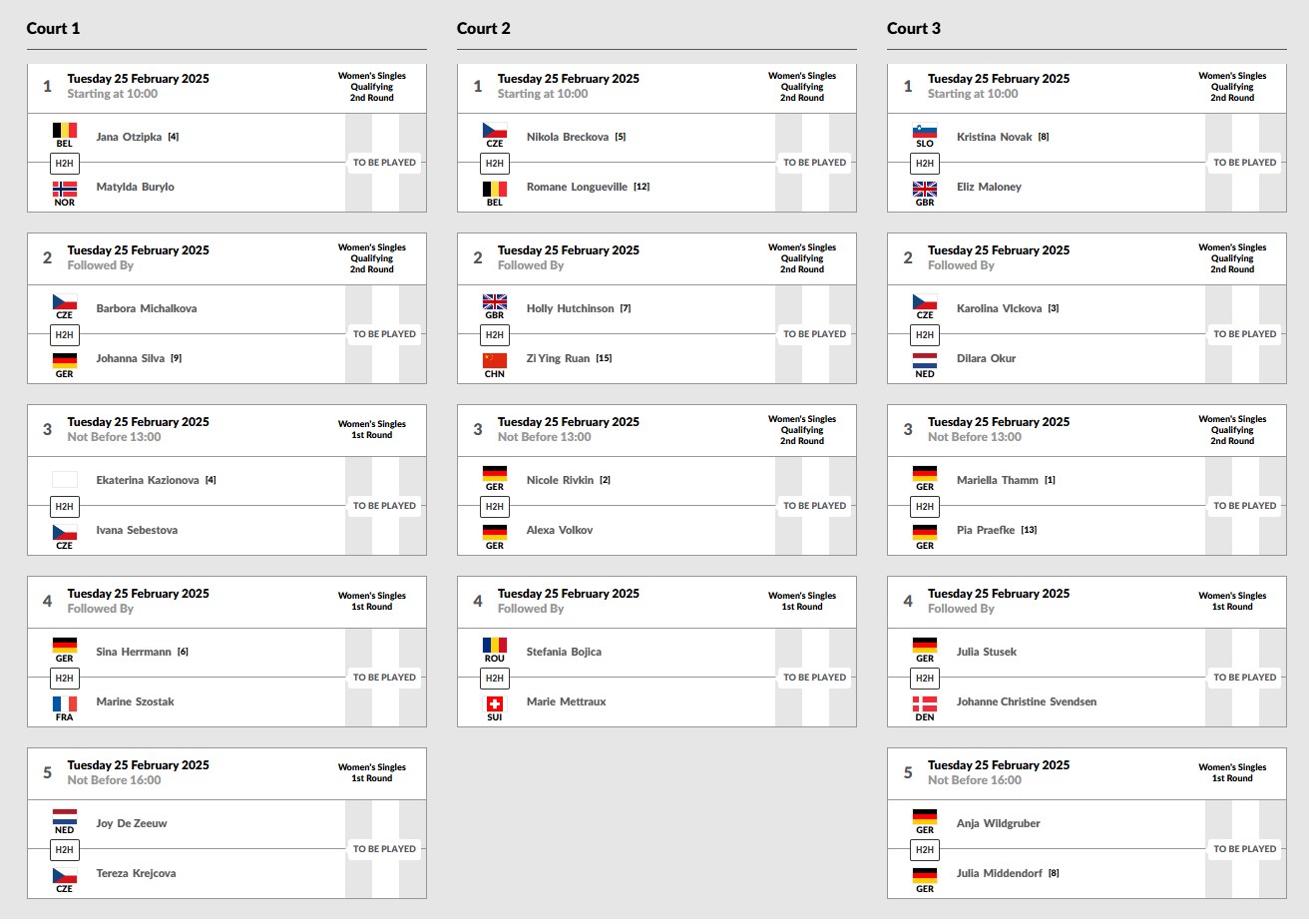(fwu – 25.2.25) Im Tennis-Landesleistungszentrum (Jahnstraße 4) in Leimen findet diese Woche das mit 15.000  US-$ dotierte Frauen-Tennisturnier „Baden Women‘s Cup“ statt. Am gestrigen Montag und heute Vormittag mit der Qualifikation, in dem 32 Damen um die Teilnahme am Hauptfeld von ebenfalls 32 Teilnehmerinnen spielen.