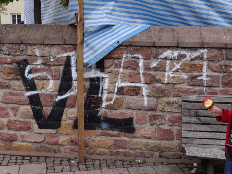 Für die Hausbesitzer und die Stadt Leimen sind diese Verunreinigungen ein teurer „Spaß“, denn die Beseitigung, gerade auf Sandstein (wie auf den Bildern), ist nicht einfach und aufwendig. Es müsste  doch möglich sein, diese Dreckspatzen zu finden und zu sozialverträglicheren Tätigkeiten heranzuziehen: „Eimer – Lappen – scheuern, bis der Dreck weg ist!“  (Einen „Täter“ bei einer ähnlichen Arbeit sehen Sie <hier> / Man beachte die Strafandrohung bei 2:05 Min.)