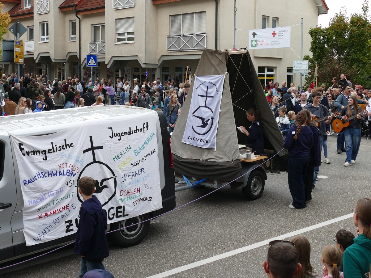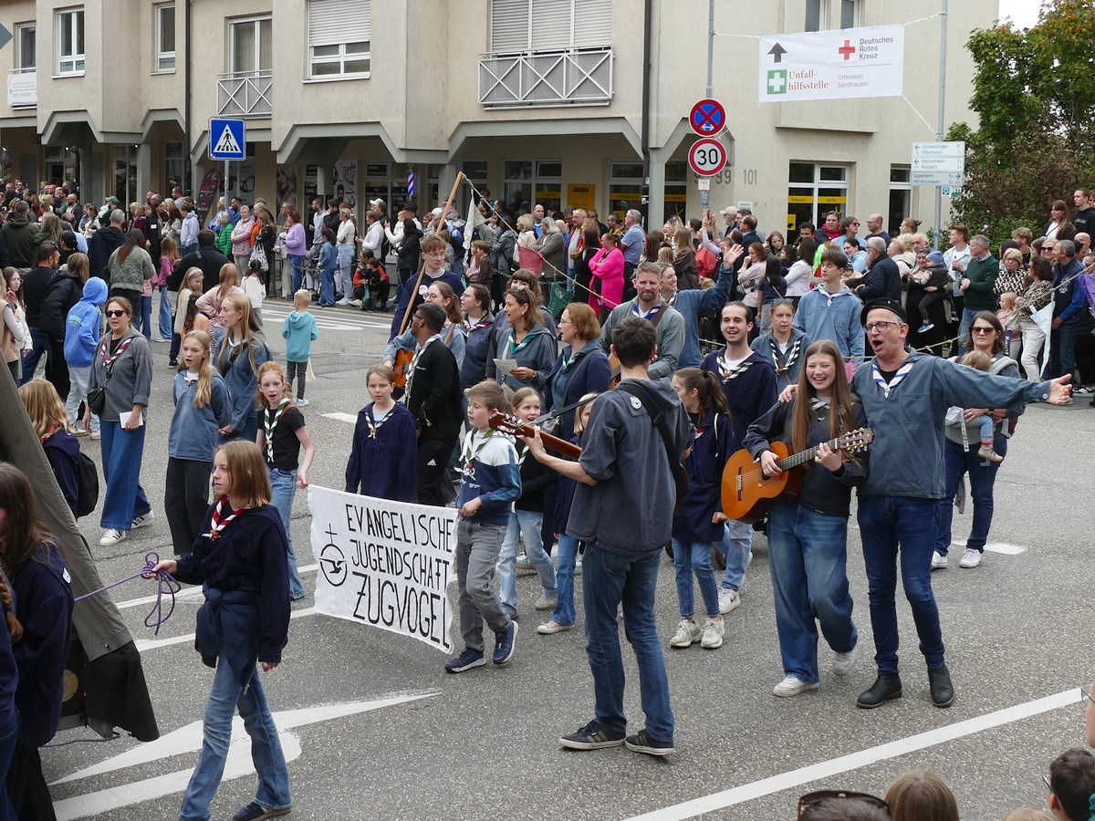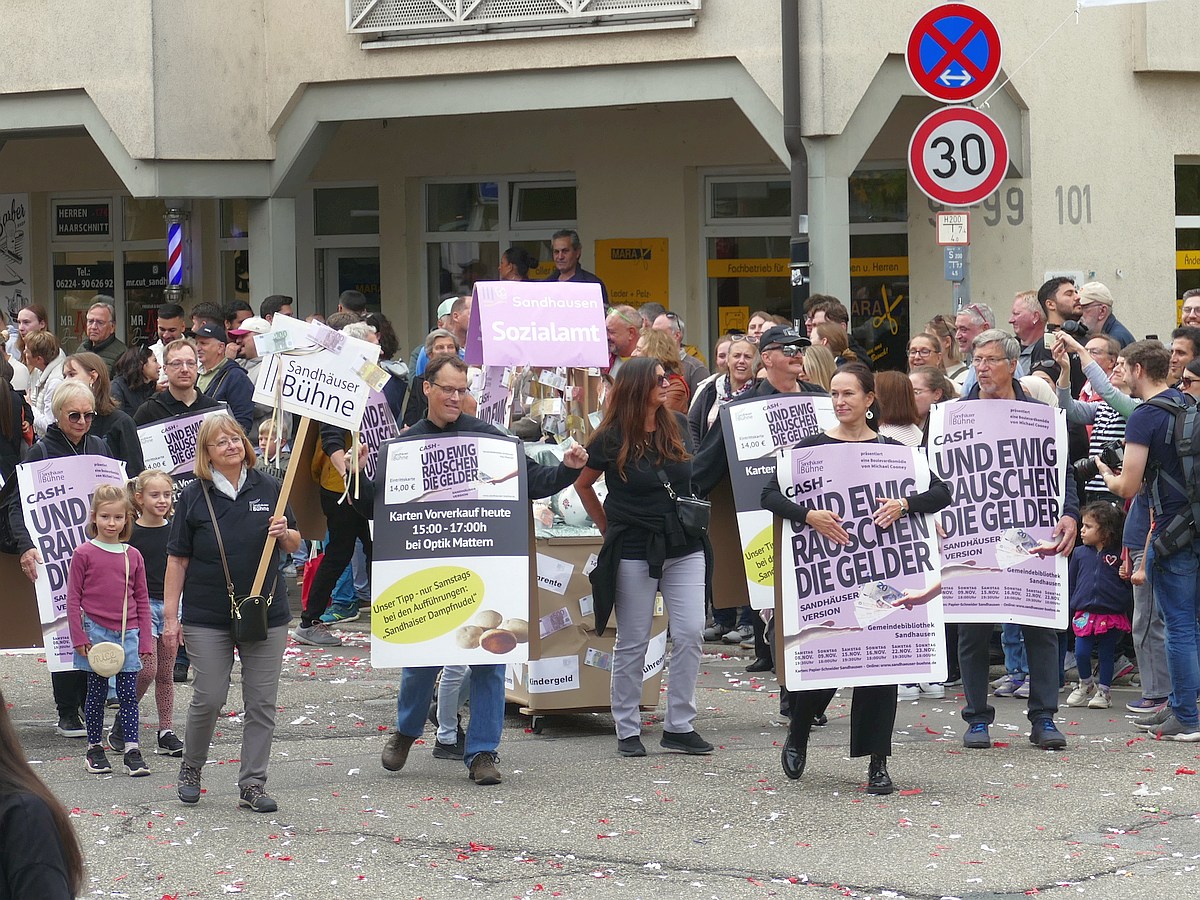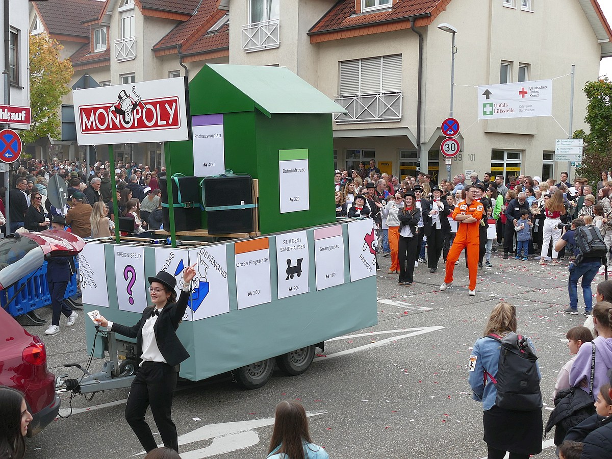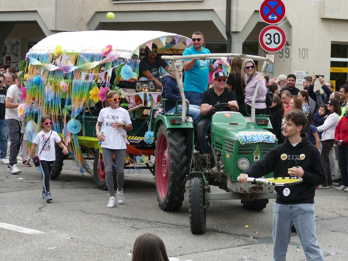 (atz – 12.10.25)  Besser hätte man es kaum inszenieren können: Am vergangenen Samstag verwandelte sich ganz Sandhausen ab 14 Uhr in eine farbenfrohe Festmeile – einmal quer durch den Ort zog der große Kerweumzug, bejubelt von tausenden Menschen, die am Straßenrand dicht gedrängt Spalier standen. 25 Gruppen, Vereine, Kindergärten und kreative Einzelkämpfer hatten sich in Schale geworfen, um der Kerwe eine ausgelassene Bühne zu bieten – und was für eine!