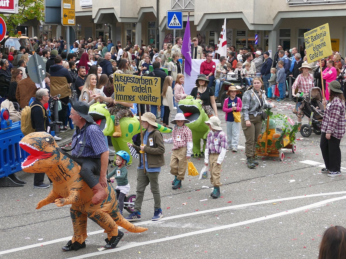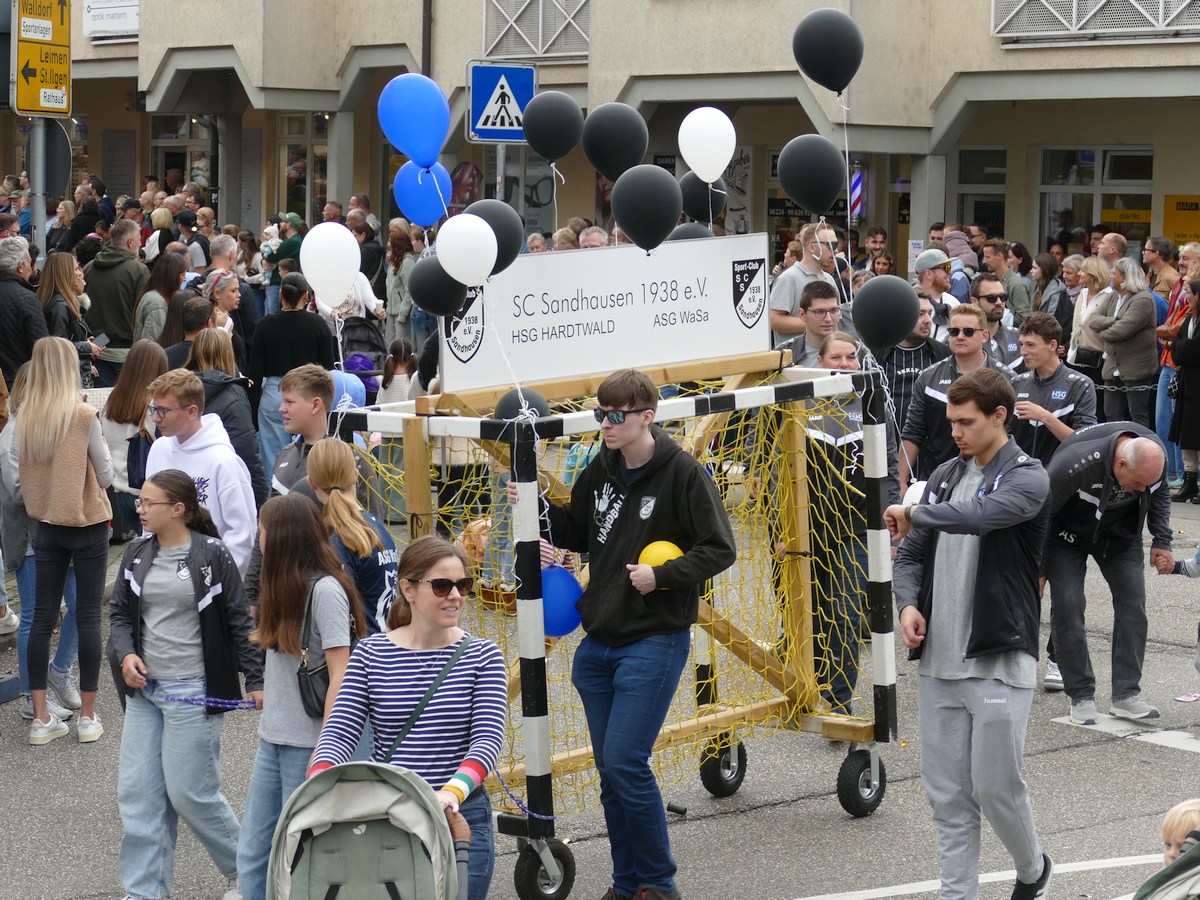 Natürlich ließ sich auch der SC Sandhausen 1938 e.V. nicht lumpen. Mit tragbarem Handballtor, Ballons und jeder Menge Nachwuchsakteure demonstrierten die Sportler: Auch auf Rädern lässt sich gut trainieren. Eine sportliche Parade mit Vereinsflagge und Teamgeist.