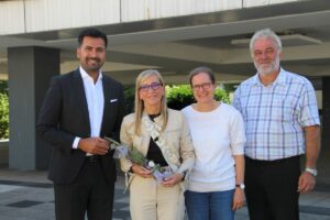 (mbr – 9.9.25) „Hauptsache der Laden läuft“ – das habe der Schulleiter Peter Spycher ihr gesagt, erzählt Sonja Kraft. Er war vor über 35 Jahren ihr erster Chef und die Aussage sei über ihre komplette Zeit als Schulsekretärin an der Friedrich-Ebert-Werkrealschule handlungsleitend gewesen. Nun wurde Sonja Kraft in den Ruhestand verabschiedet und damit büßt die Schule die gute Seele ein. Der Dank von Bürgermeister Hakan Günes bei der offiziellen Verabschiedung im Rathaus fiel reichhaltig und emotional aus.