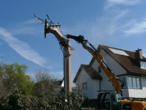 Eine der letzten Material-Seilbahn-Stüzen fällt