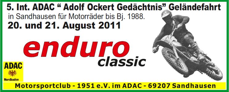 Am 20. und 21. August diesen Jahres veranstaltet der Motorsportclub Sandhausen seine fünfte internationale Gedächtnisfahrt zu Ehren des 1999 verstorbenen Sportkameraden Adolf Ockert. Im Jahre 2001 erstmals ausgetragen, hat sich die alle zwei Jahre stattfindende Veranstaltung mittlerweile fest etabliert. Auf Grund der positiven Resonanz der letzten vier Fahrten, führt der MSC diese Großveranstaltung in diesem Jahr wieder durch.