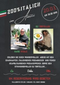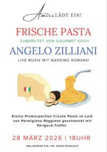 Jubiläumsabend 130 Jahr GV LiedertafelAegidiushalle St. Ilgen, 18 Uhr (Details hier) Frische Pasta von Angelo ZillianiAmici-Restaurant im ZAP Nußloch |