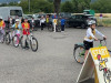 Erneut folgte ein Kreisel mit einer Kette. Dieser war gegen den Uhrzeigersinn zu befahren. An diesen beiden Kreiseln hatten die meisten Kinder die größten Schwierigkeiten. Nur wenige konnten die beiden Stationen fehlerfrei bewältigen. Bevor ein Spurwechsel mit Handzeichen nach links gefordert war, mussten sich die Kinder mit einem Schulterblick nach links eine Zahl, die später abgefragt wurde, merken. Es folgte die Durchfahrt durch den Slalom. Hier ging es um Tempo bzw. Schnelligkeit. Die benötigte Zeit wurde mit einer Stoppuhr gemessen und wurde bei eventueller Punktegleichheit für die Platzierung herangezogen. Am Ziel angekommen war eine Notbremsung vor einem Hindernis gefordert.