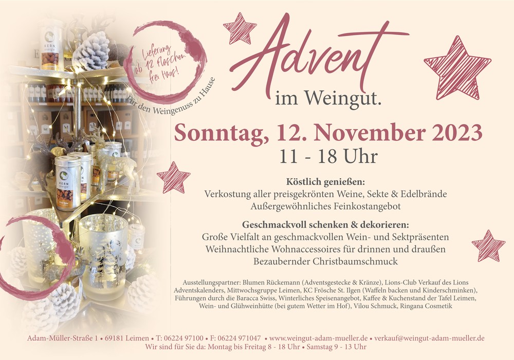 Advent im Weingut Adam Müller am Sonntag: Genießen, schenken, dekorieren