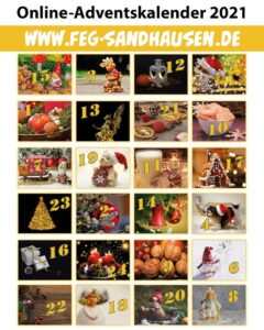 Wie der Zufall es will, gibt es 22 Klassen plus die beiden Jahrgangsstufen am FEG, also insgesamt 24 Gruppen. Es lag nah, diese Zahl in der aktuellen Zeit zu nutzen und etwas Gemeinsames zu gestalten: einen Online-Adventskalender. Jeden Tag öffnet sich auf unserer Homepage ein Türchen zu einem Bild oder Video, das sich hinter einer der 24 Zahlen versteckt. Bis zum Weihnachtsfest erhalten wir so täglich einen Einblick in das, was die verschiedenen Klassen erstellt haben. − Schauen Sie doch mal vorbei!