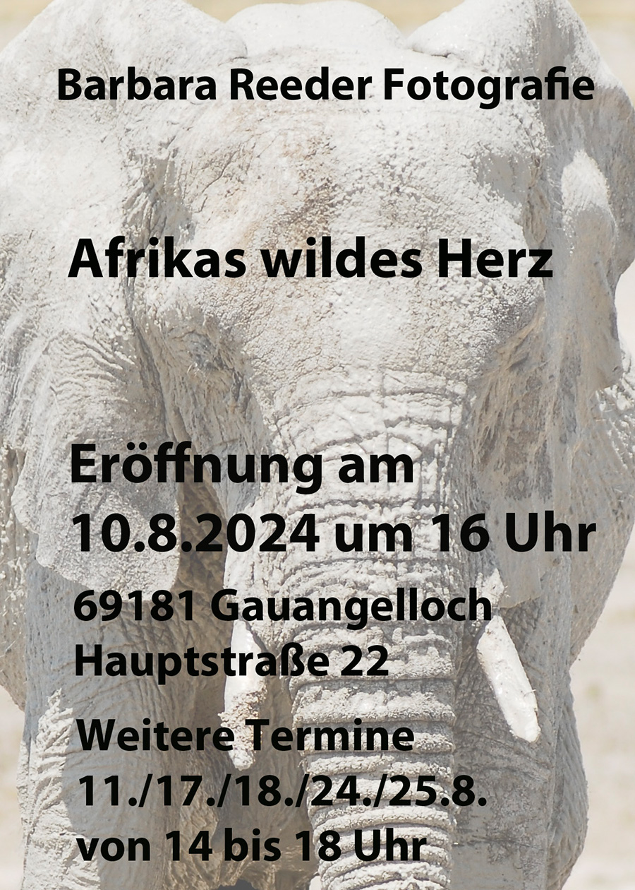 (pm – 27.7.24) Die Kalahari kommt nach Gauangelloch: Am Samstag, den 10. August, eröffnet um 16 Uhr in der Hauptstraße 22 die Fotoausstellung „Afrikas wildes Herz“.