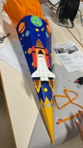 Vom Einhorn bis zur Rakete war für jeden Geschmack etwas dabei. Die Kinder genossen sichtlich die Zeit, die sie mit ihren Eltern für diese besondere Aktion hatten. Bei Fragen oder Hilfestellungen waren Kolleginnen anwesend und konnten gut weiterhelfen. Am Ende des Nachmittags waren alle stolz auf die entstandenen Werke. Hierdurch wurde die Vorfreude noch größer auf die bevorstehende Schulzeit und wird allen sicher in guter Erinnerung bleiben.