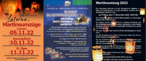 Um 18 Uhr ist dann in St. Ilgen, Nußloch und Sandhausen die Zeit für die Martinszüge gekommen. Für alle kleinen Kinder ein großes Erlebnis, wenn sie mit Lampion oder Laterne gemeinsam mit vielen anderen in der Dunkelheit laufen und Martinslieder singen.
