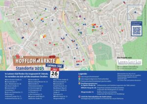 (rng – 22.7.25) Über 80 Stände wurden zu den diesjährigen Hofflohmärkten in Leimen angemeldet. Von Kinderkleidung über Antiquitäten bis hin zu Kuriosem wird zwischen 10 und 15 Uhr wieder alles Mögliche zu finden sein. Aber neben der Möglichkeit, das eine oder andere Schnäppchen zu ergattern, sind Hofflohmärkte auch immer eine gute Gelegenheit, mit den Standbetreibern und anderen Besuchern ins Gespräch zu kommen. Dieser nachbarschaftliche Austausch ist der bürgerschaftlichen Initiative „Leimen Legt Los“, die in diesem Jahr bereits zum sechsten Mal die Hofflohmärkte organisiert, besonders wichtig. Freundliche Unterstützung bekommt sie von Anfang an von der Stadt Leimen.