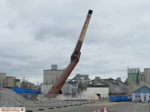 (fwu – 18.1.22) Auf dem Gelände der früheren Eternit GmbH – die in den ETEX-Konzern eingegliedert wurde – wurde heute um Punkt 14 Uhr der 60 Meter hohe Schornstein gesprengt. Nachdem die Faserzement-Produktion eingestellt wurde, wird das Gelände rückgebaut. Der Schornstein wurde  in den 1960er Jahren erbaut und ist bereits seit Mai des letzten  Jahres nicht mehr in Betrieb. Er war Teil der Wärmeversorgung für die Unternehmensgebäude. Nachdem die Energieversorgung des Geländes im letzten Jahr neu erstellt und durch moderne und an den Bedarf angepasste Technologien ersetzt wurde, wurde der Schornstein nicht mehr benötigt“.