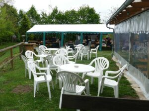 Die Außenbereiche blieben angesichts des ungemütlichen Wetters weitgehend verwaist. Nur vereinzelt fanden sich wetterfeste Gäste, die es sich unter den Zelten oder in der kleinen warmen Gaststube gemütlich machten.
