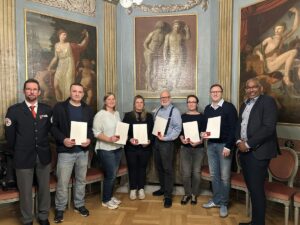 (6.11.2025 mu) Im Spiegelsaal des Leimener Rathauses empfing Oberbürgermeister John Ehret am Abend des 4. November 2025 langjährige Blutspenderinnen und –spender, um ihnen für ihren großherzigen Dienst an der Allgemeinheit zu danken und sie dafür auszuzeichnen.