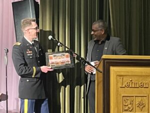 Ein besonderer Dank von Oberbürgermeister John Ehret galt dem ehemaligen Verbindungsoffizier Norbert Hooks, durch dessen persönliche Kontakte dieses Gastspiel mit ermöglicht wurde. Zudem nutzte der OB den Rahmen für eine persönliche Geste: Er verabschiedete den langjährigen Pressesprecher der Stadtverwaltung Michael Ullrich in den wohlverdienten Ruhestand. Ullrich hatte im Vorfeld die Termine koordiniert und die Organisation gestemmt, um das Konzert nach Leimen zu holen.