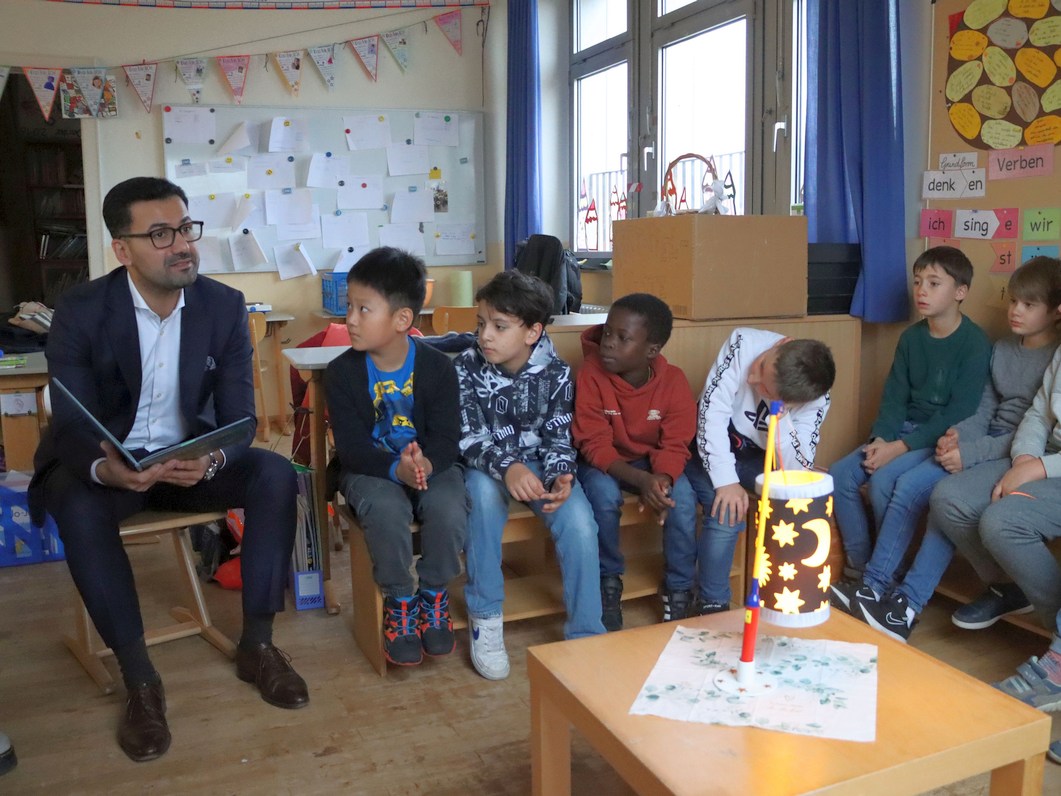Bürgermeister Hakan Günes bringt Grundschülern „Das schönste Martinslicht“ näher