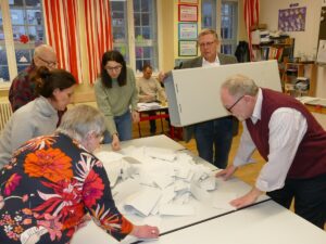 (fwu – 24.2.25) Um Punkt 8 Uhr öffneten die Wahllokale und die ersten Stimmen wurden abgegeben. Die letzten Stimmen dann um 18 Uhr, wobei alle Wählerinnen und Wähler, die um 18 Uhr bereits im Wahllokal zur Stimmabgabe anwesend waren und hier „im Stau“ standen, auch noch ein bisschen später ihr Kreuz machen durften.