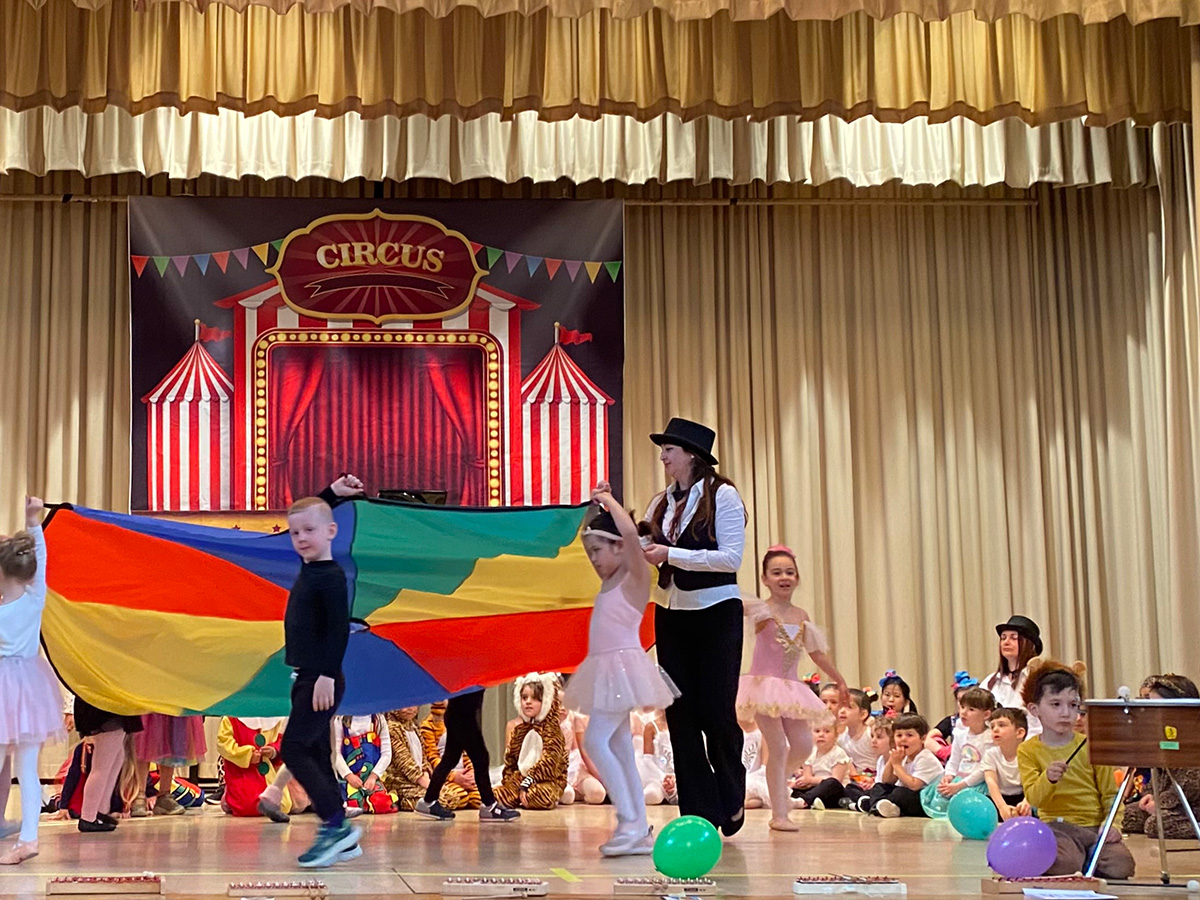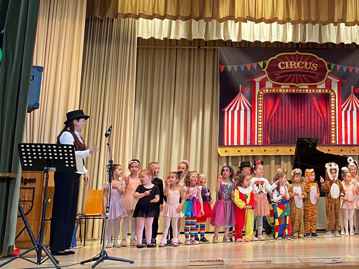 (ms – 1.5.24) „Im Zirkus Pizzikato, da ist es wunderschön“ lautete das Motto der diesjährigen Aufführung der Kinder des Elementarbereichs am 28.4 in der voll besetzten Aegidiushalle. Mit dabei waren die Gruppen der musikalischen Früherziehung aus der Musikschule unter der Leitung von Irina Gross und die Gruppen aus dem Pestalozzi Kindergarten unter der Leitung von Natalia Jakob-Apars. Musikalisch begleitet wurden sie von Thomas Wagner am Klavier und Nicole Apars auf der Geige.