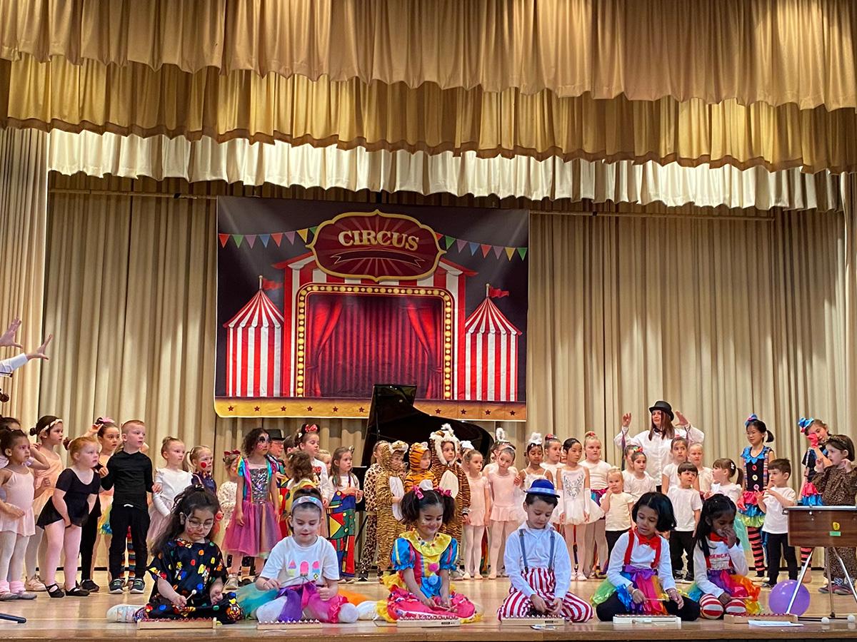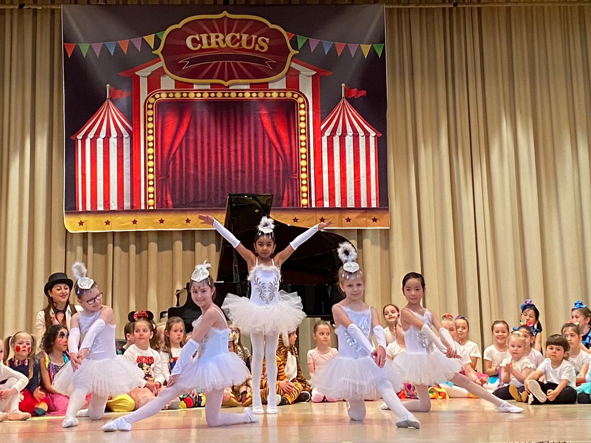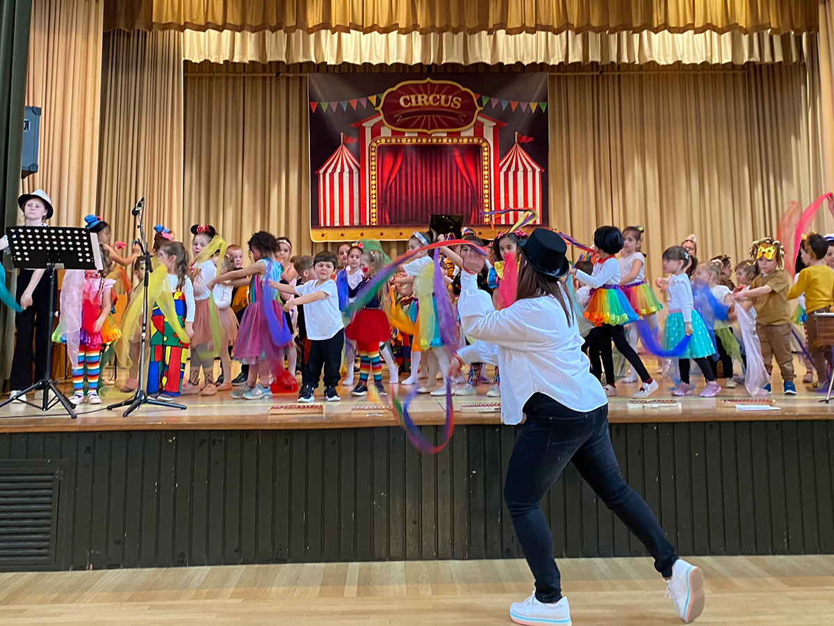 Die Vorstellung wurde mit dem Einmarsch der kleinen Künstlerinnen und Künstler zu Zirkusmusik eröffnet. Das immer wieder gesungene Zirkuslied der Kinder kündigte die einzelnen Programmpunkte an. Die Ballettklassen zeigten einen Pferde-, Clown- und Bändertanz.