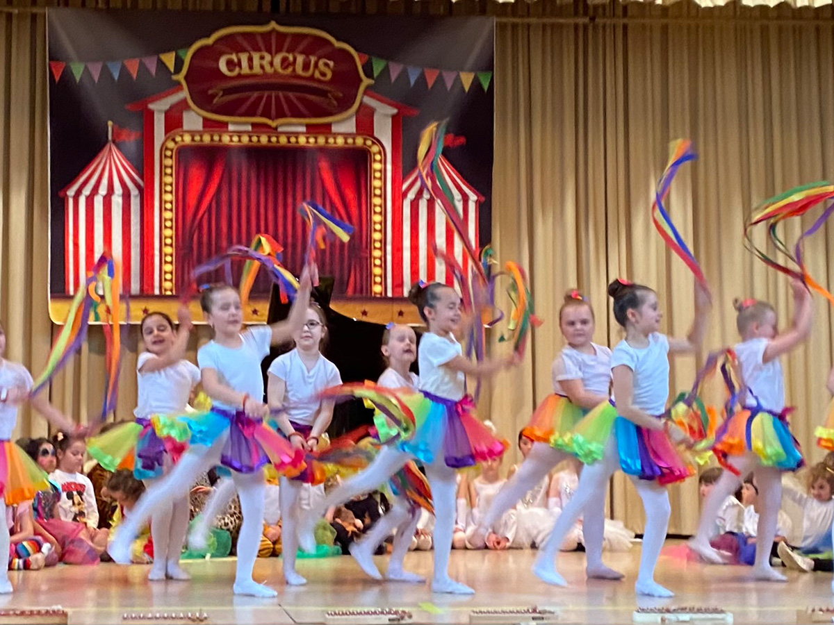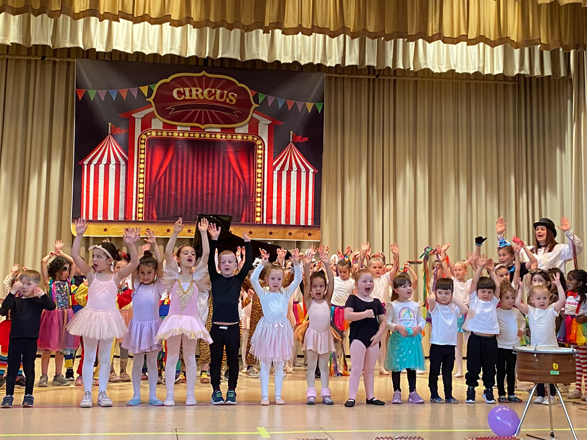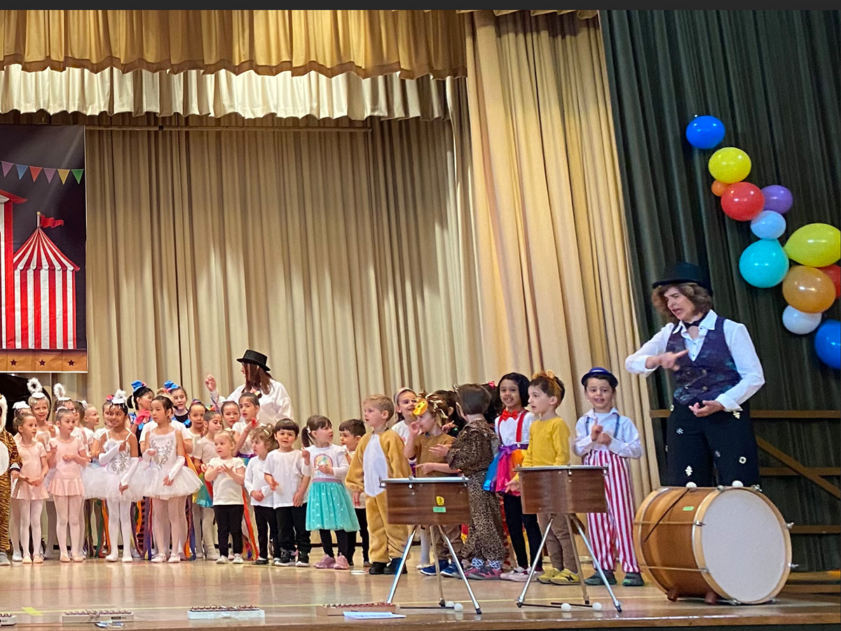 Die Vorstellung wurde mit dem Einmarsch der kleinen Künstlerinnen und Künstler zu Zirkusmusik eröffnet. Das immer wieder gesungene Zirkuslied der Kinder kündigte die einzelnen Programmpunkte an. Die Ballettklassen zeigten einen Pferde-, Clown- und Bändertanz.