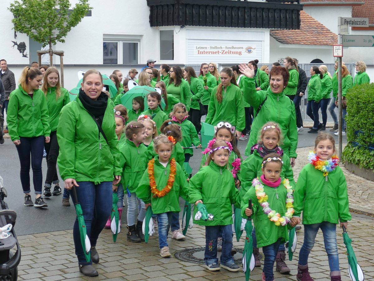 (fwu – 8.5.17) „Der Mai ist gekommen“ war eines der am häufigsten gespielten Lieder auf dem Sommertagszug des St. Ilgener Frühlingsfestes am gestrigen Sonntag.  Vom Datum her stimmt das eindeutig, allerdings war das Wetter noch nicht so richtig frühlings- oder gar sommermäßig. Wenigstens regnete es (noch) nicht, als sich die Zugteilnehmer am  Pestalozzi-Kindergarten aufstellten um dann, angeführt von Oberbürgermeister Hans Reinwald mit Gattin und St. Ilgens Amtsleiter Uwe Sulzer, eine große Runde durch den Ort zu ziehen.
