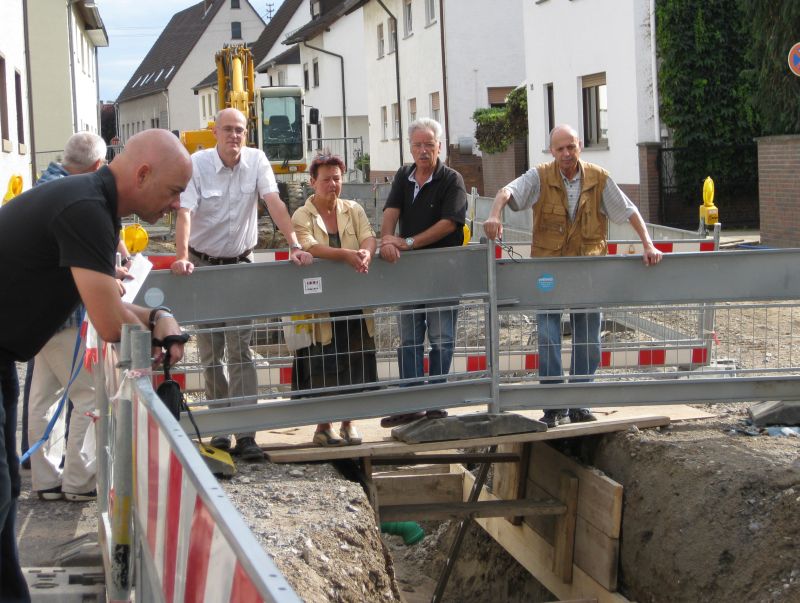 Vor ca. 6 Wochen war die CDU in der Bahnhofstraße in St.Ilgen um sich über den Baufortschritt vor Ort ein Bild zu machen(siehe Artikel). Die CDU St.Ilgen fragt nach (13.08.2011), um zusammen mit den Anwohnern, Antworten auf Ihre seit langem brennenden Fragen zu bekomme. Herr Grahl als Wassermeister der Stadt, hatte sich am Freitag extra für diesen Termin Zeit genommen und beantwortete ausführlich die Ihm gestellten Fragen.