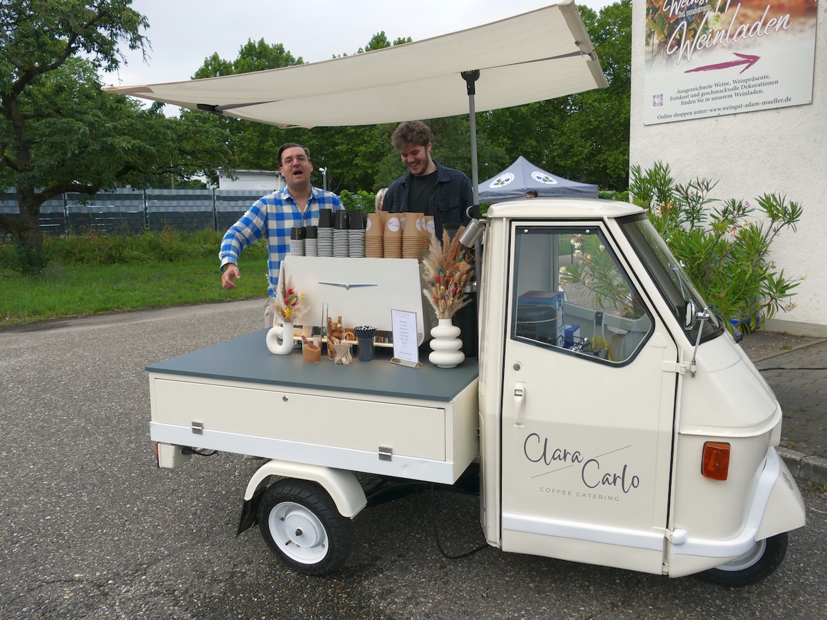 Am 26.07.2025 pünktlich um 11:01 Uhr startete das erste teilnehmende Fahrzeug unserer Youngtimer-Rallye. Los ging es bei unserem Sponsor Weingut Adam-Müller in Leimen mit kleinem Frühstücksnack und geschmackvollen alkoholfreien Sekt. Wem das für gute Stimmung oder Aufwecker nicht reichte, konnte von gutem Café von CLARA & CARLO Specialty Coffee & Catering Mannheim profitieren oder eine von der St. Ilgener Traditionsbäckerei Toni Sailer gesponsorte Brezel essen.