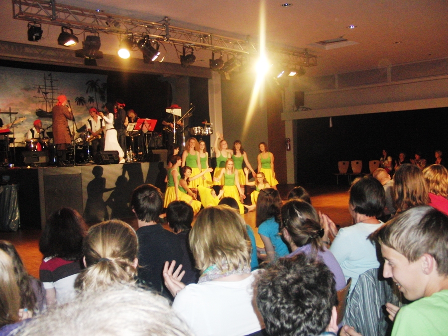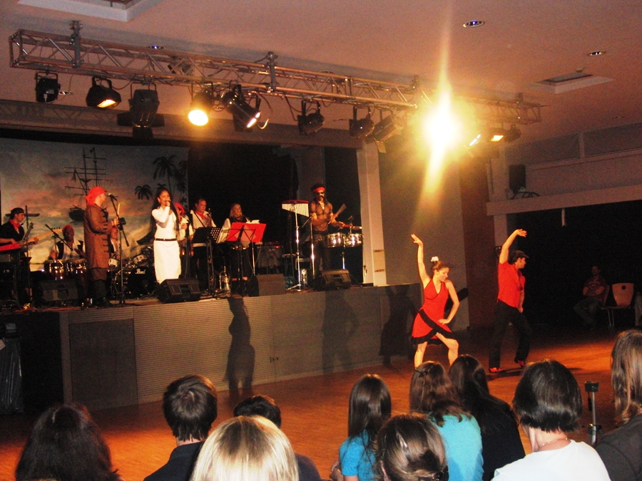 „Havana Coastline“ ist ein Musikprojekt, das unter der Leitung von Thomas Kennel, Lehrer am FEG, steht. Das Basis-Ensemble ergänzt sich durch wechselnde internationale, vor allem karibische, Gastmusiker und -tänzer. Neu in der Formation war Maray Motalvo aus Kuba, deren Gesang und Tanz den „Groove der Karibik“ authentisch verkörperte und die Stimmung richtig aufheizte.