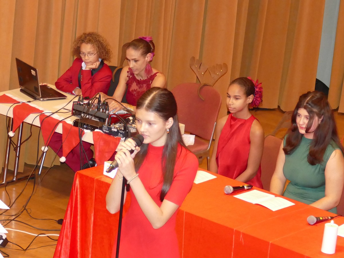 Am vergangenen Freitagabend verwandelte sich der Rosensaal in ein Radiostudio. Unter dem Titel „Vocals Unleashed – Radio Christmas FM: Der Klang des Herzens“ präsentierten Michelle J. Bradshaw und ihre Gesangsklasse ein Weihnachtsprogramm mit Liedern und Geschichten aus fast 100 Jahren. Statt einer üblichen Liedfolge gab es Moderation, Hintergrundinfos und persönliche Einblicke – von den Schülerinnen selbst vorgetragen.