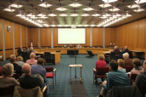 Zur Infoveranstaltung zum Starkregenrisikomanagement waren viele Gäste in den Großen Ratssaal im Rathaus gekommen. Foto: Gemeinde Sandhausen