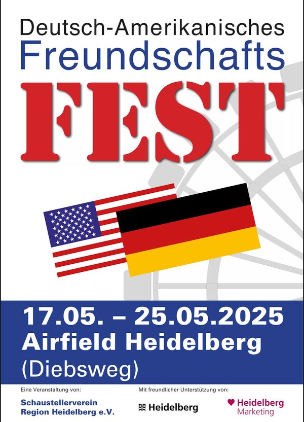 (fwu – 16.5.25) Am morgigen Samstag, 17. Mai 2025, beginnt auf dem ehemaligen US-Airfield zwischen Kirchheim und Pfaffengrund das diesjährige Deutsch-Amerikanische Freundschaftsfest. Die Veranstalter rechnen mit zahlreichen Besucherinnen und Besuchern aus Heidelberg und der Region. Der Auftaktabend wird von einem Feuerwerk begleitet.