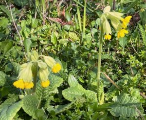 Die hellgelbe hohe Schlüsselblume wird auch als „unechte“ Schlüsselblume bezeichnet, da sie etwas früher blüht, wenn der Frühling noch nicht so richtig angefangen hat. Sie mag gerne feuchte lehmige Böden, wie sie in den Wiesen der Senken von Leimen, Sandhausen und Nußloch zu finden sind.