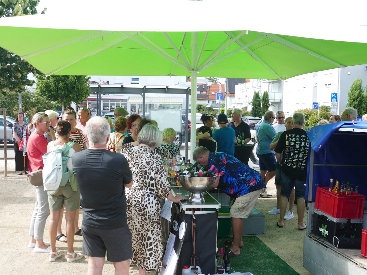 Bei einem kühlen Getränk konnten die Zuhörer die Musik genießen und sich vom Einkauf erholen. Auch die FDP nutzte den Markt, um Unterschriften gegen die drohende Landtagsvergrößerung zu sammeln.