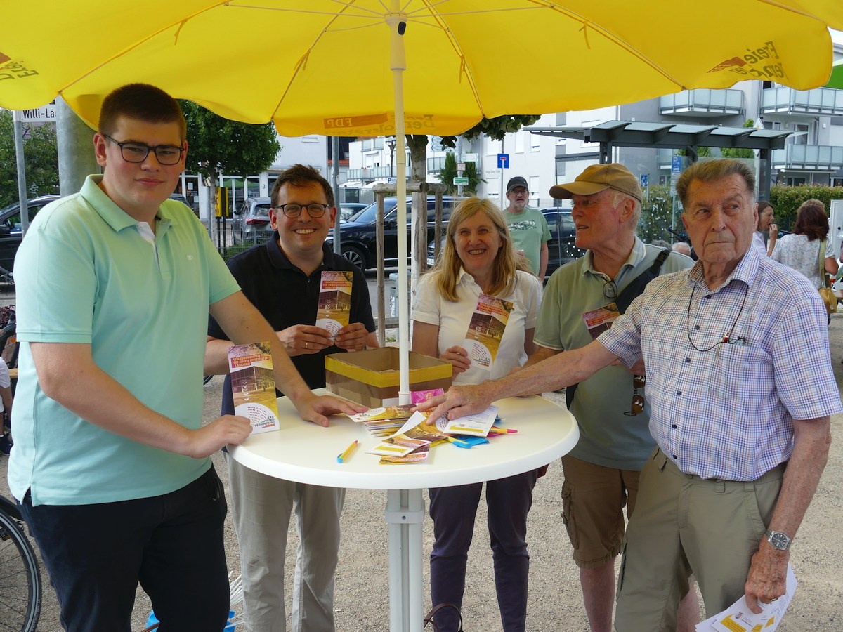 Die Aktion stieß auf große Resonanz: Zahlreiche Besucherinnen und Besucher unterstützten das Anliegen: Die Unterschriften flogen dem FDP-Team um Claudia Felden und den FDP-Ortsvorsitzenden Alexander Hahn förmlich zu.