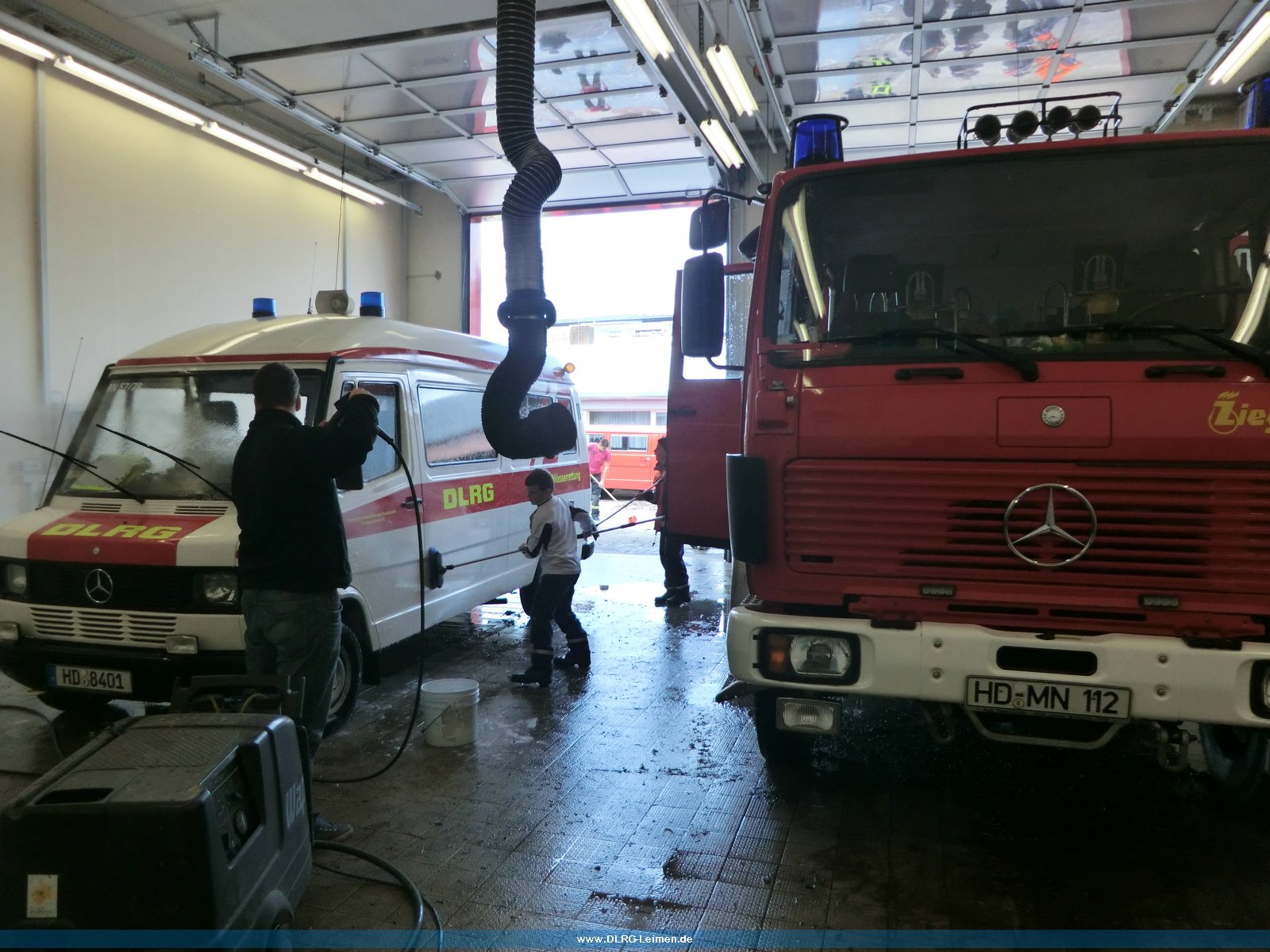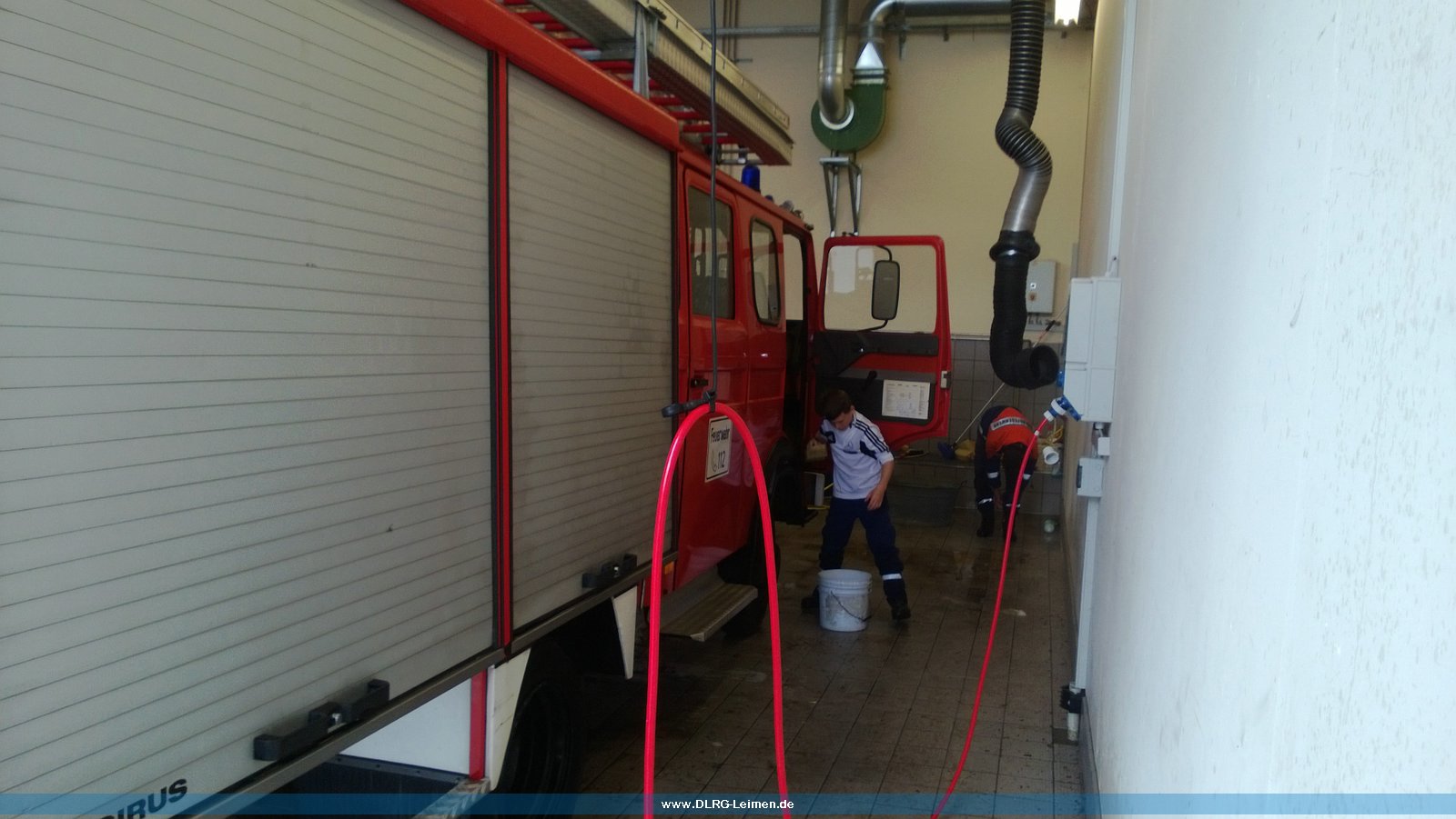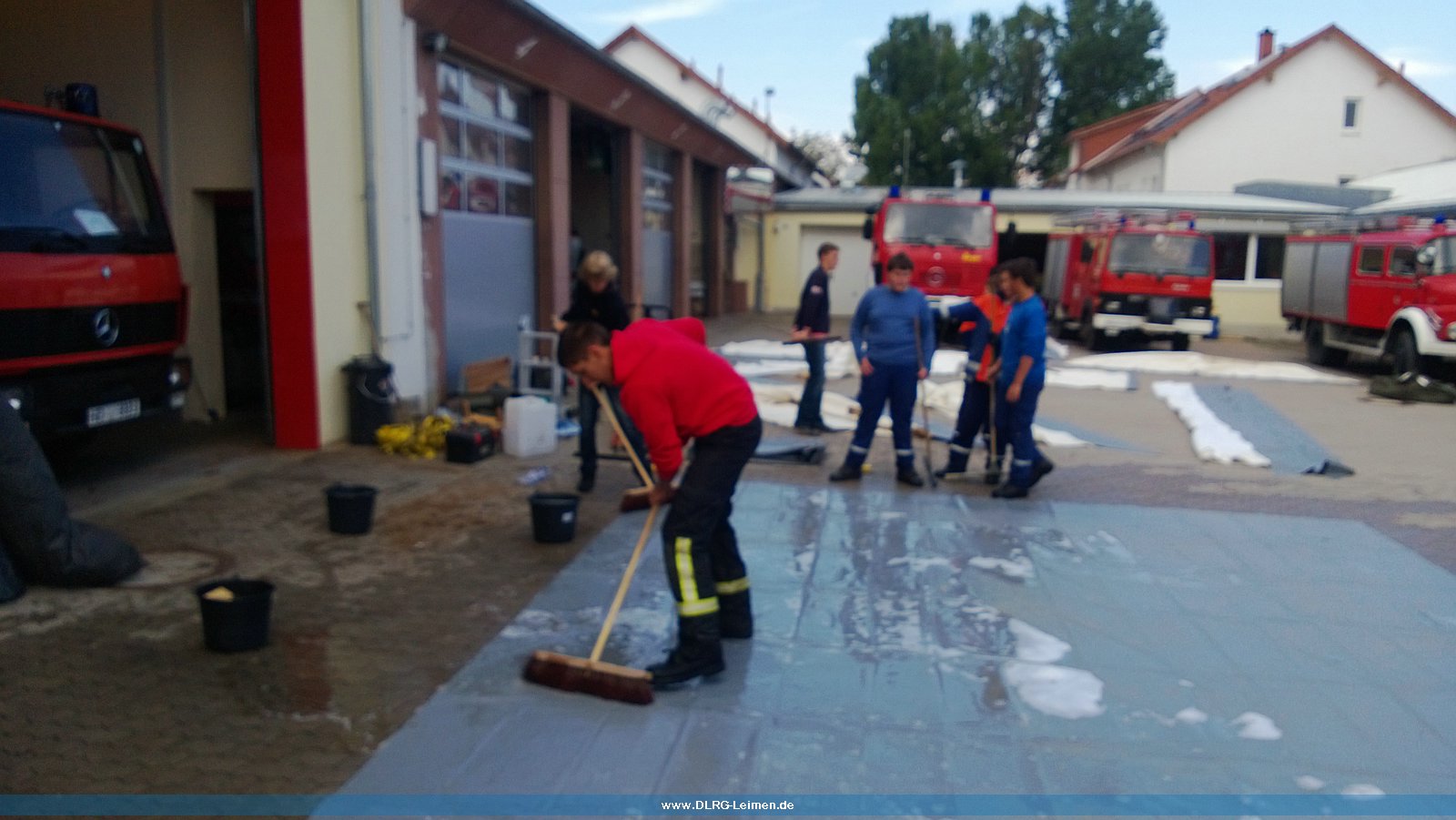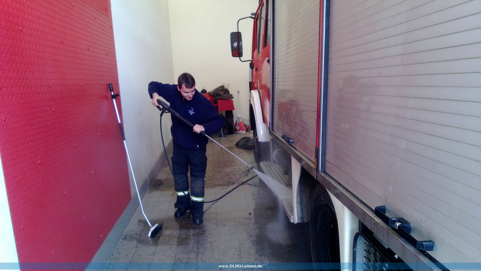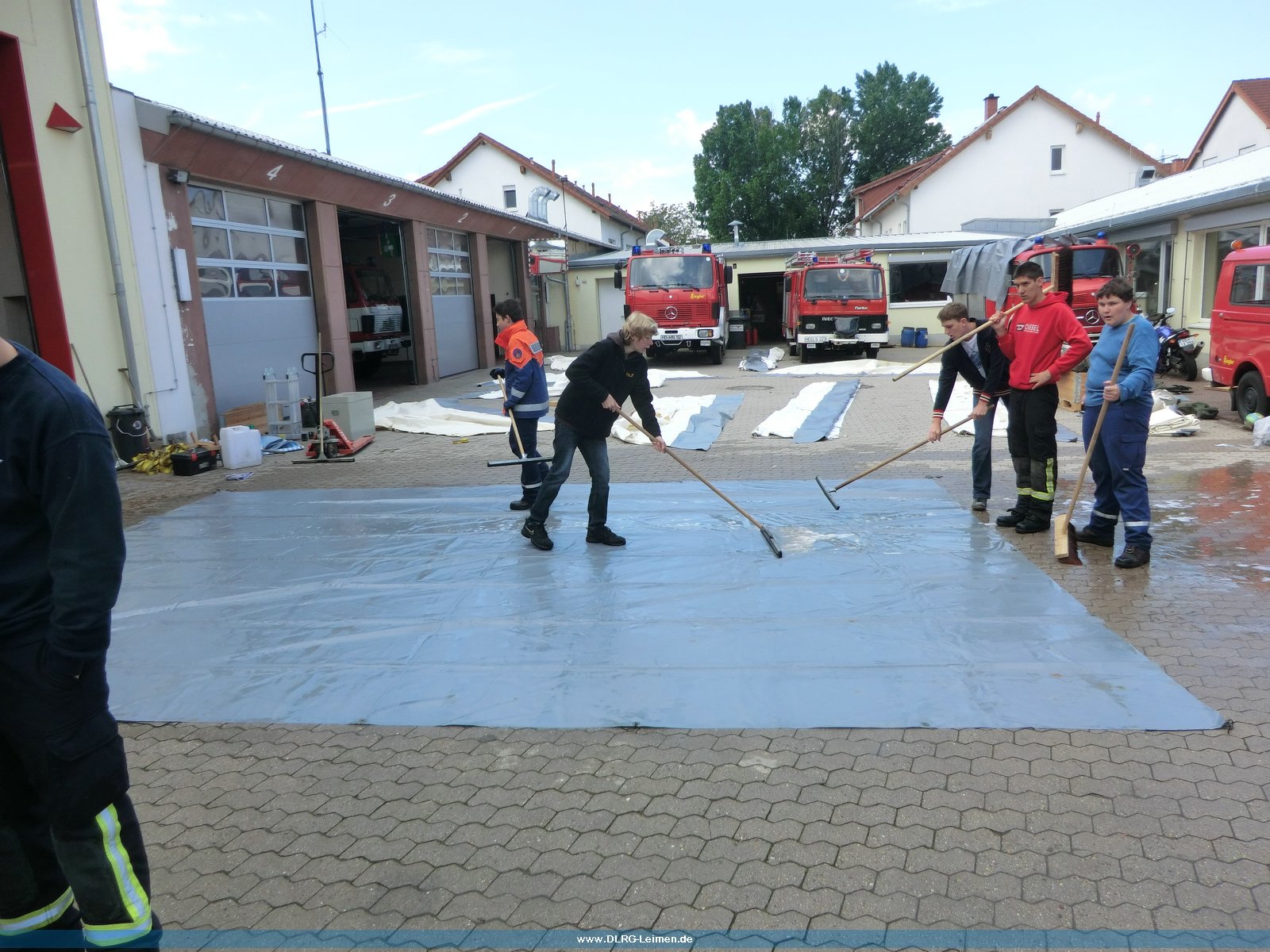 Nachdem freitags die Jugendlichen nur noch nach Hause wollten und schlafen, traf man sich samstags erneut im Feuerwehrhaus, um die Zelte, das Equipment und die Fahrzeuge noch zu säubern.