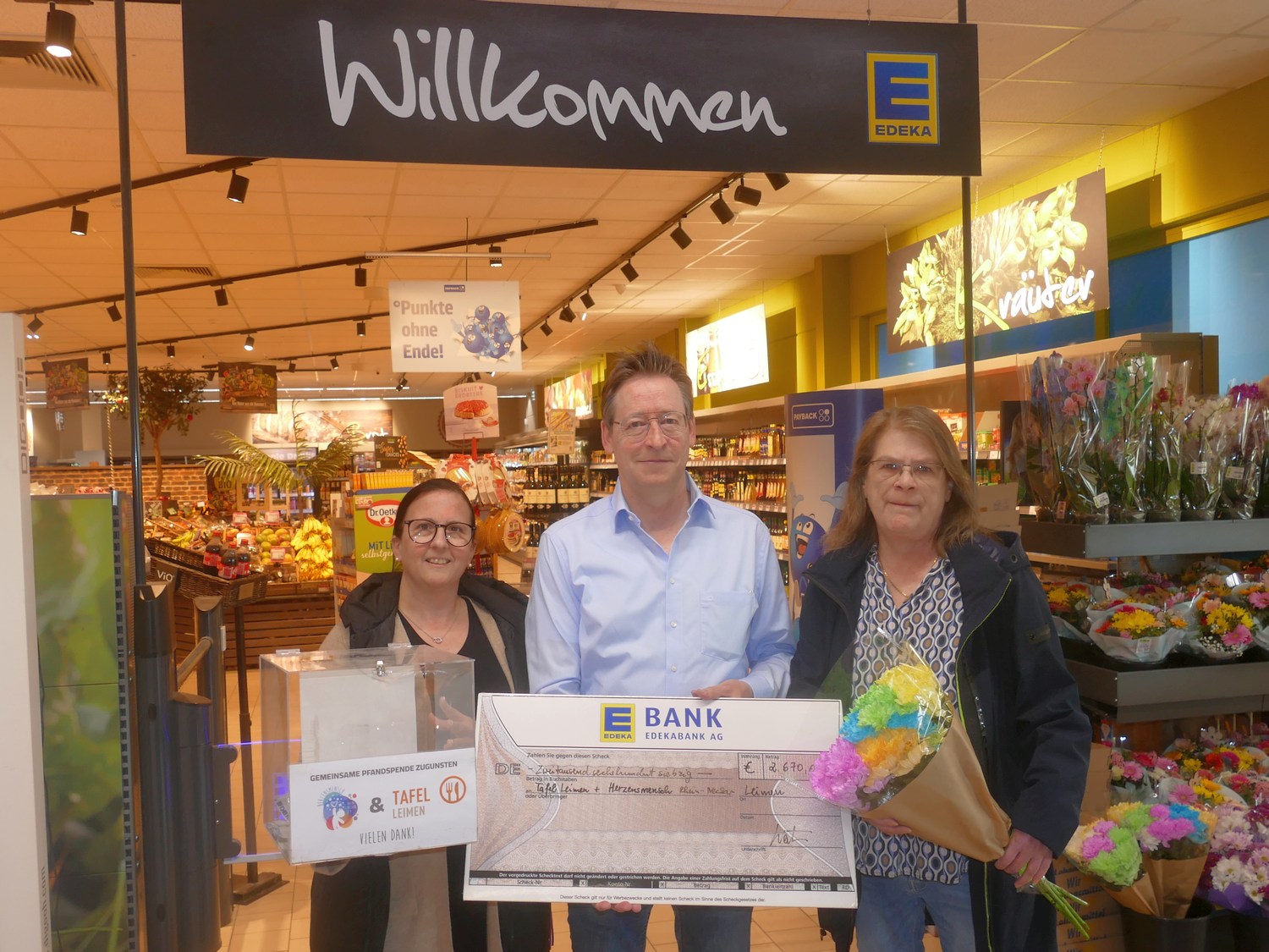 (fwu – 9.5.25) Es muss nicht immer die große Geste sein – manchmal reicht ein kleiner Klick am Pfandautomaten, um Großes zu bewirken. Genau das haben die Kundinnen und Kunden des EDEKA-Markts Walter in Leimen eindrucksvoll gezeigt: Satte 5340 Euro wurden in den vergangenen zwei Jahren über gespendete Pfandbons und Kleingeld gesammelt – ein Betrag, der sich sehen lassen kann, wie ein frisch geputztes Schaufenster am Markttag!