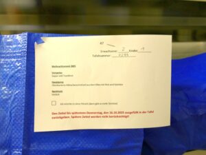 Das Menü ist schlicht, aber durchdacht: Suppe mit Toastbrot, überbackenes Hähnchenschnitzel mit Reis und Gemüse, dazu Gebäck. Wer kein Fleisch will, bekommt mehr Gemüse. Alles geplant, bestellt, verpackt – nicht ins Blaue, sondern auf Grundlage eines Rückmeldebogens. Die Tafelkunden konnten darin Personenanzahl und Sonderwünsche angeben. Spätere Rückgaben wurden nicht berücksichtigt. Nur so ließ sich die Verteilung organisieren.