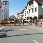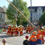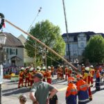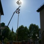 Schon die Anlieferung des stolzen Maibaums per Kleinlaster sorgte für neugierige Blicke und erste Jubelrufe. Dann übernahmen die Profis in Rot-Gelb das Kommando. Mit langen Holzstangen, Schweiß auf der Stirn – bei besten Sommerwetter und strahlendem Sonnenschein! – und bewundernswerter Präzision wurde der Baum in seine Halterung bugsiert – natürlich unterstützt von einem Kran, der das Ganze sicher und feierlich in die Höhe hob.