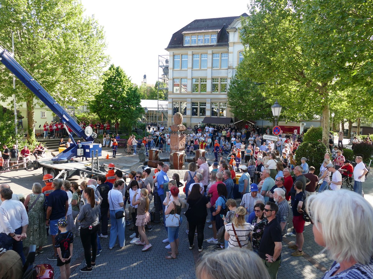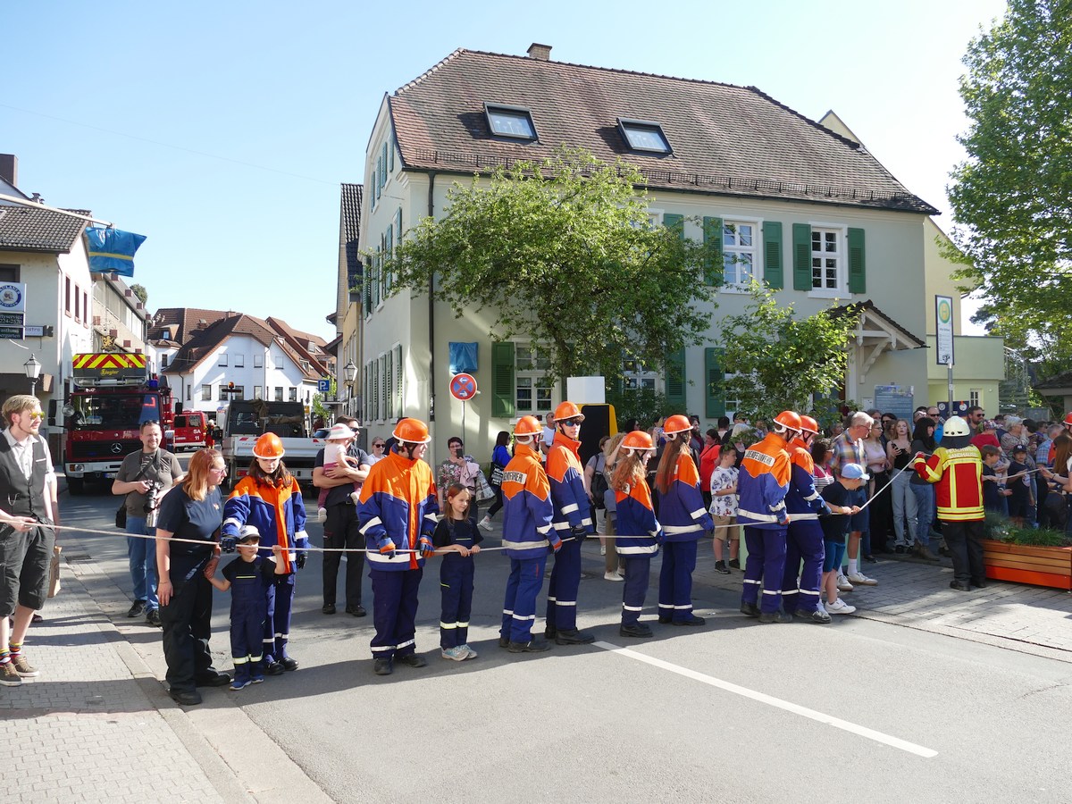 Die Kinder- und Jugendfeuerwehr sperrte derweil das Gelände ab und sorgte dafür, dass niemand dem Baum oder der Sicherheit in die Quere kam – eine Aufgabe, die sie mit stoischer Ernsthaftigkeit meisterten. Manch ein Erwachsener zückte bewundernd das Handy für ein Erinnerungsfoto.