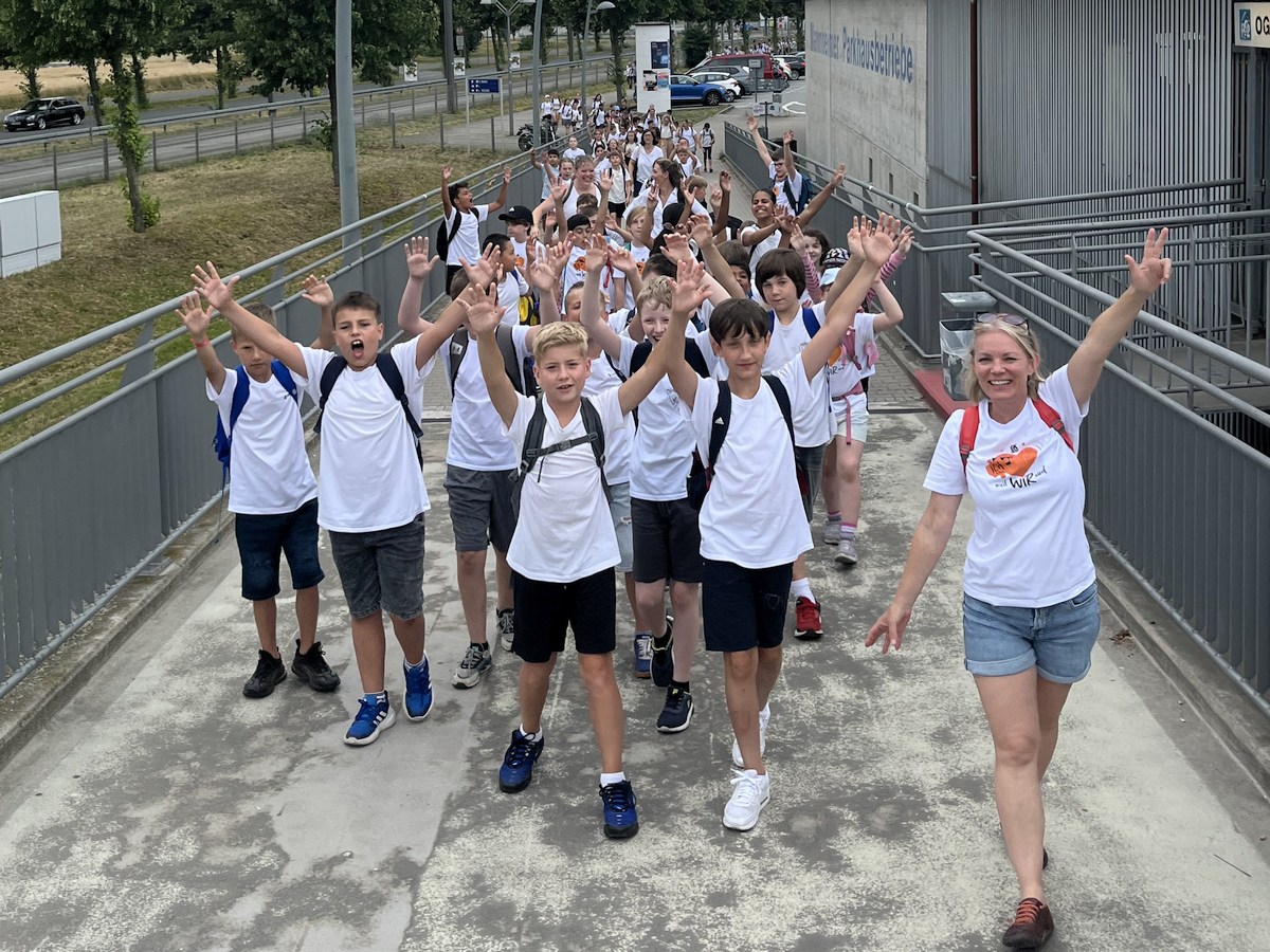 (kno – 4.6.25) Am 23. Juni war es endlich so weit: Die 4. Klassen der Turmschule machten sich auf den Weg nach Mannheim zur SAP Arena, um als Teil des gigantischen Schülerchors 6K UNITED! aufzutreten. Wochenlang hatten die Kinder mit ihren Lehrkräften geübt, gesungen und sich auf diesen besonderen Moment vorbereitet – und der Tag hielt, was er versprach!