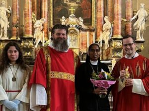 Die Einführung wurde im Rahmen eines feierlichen Gottesdienstes begangen. Für Kooperator Georg Henn war es eine große Freude, Sr. Benitta Mary in unserer Mitte willkommen zu heißen. Als Zeichen der Verbundenheit überreichte er ihr einen Blumengruß und zudem für sie ein kleines, persönliches Willkommensgeschenk.