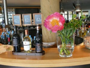 Ofenkartoffeln ab 6 €, Wurstsalat für gleich schlanke 6 € (mit Pommes für 9 €) oder ein Flammkuchen für 11 € stehen auf der Karte. Salate zwischen 5 und 13 €, letzterer immerhin ein Salat Buenos Aires mit gebratenen Brisket-Streifen (Rind). Da geht einem doch das Herz auf! Dazu eine Flasche (!) Rot- oder Weißwein für 12 €. Für Biertrinker eine große Auswahl an wirklich ungewöhnlichen Sorten, von IPA über Bierzeit Maibock (!) oder Alla Hopf. Genug zum Ausprobieren und das in Selbstbedienung ab Kühlschrank. Die Speisen werden natürlich an den Tisch gebracht.