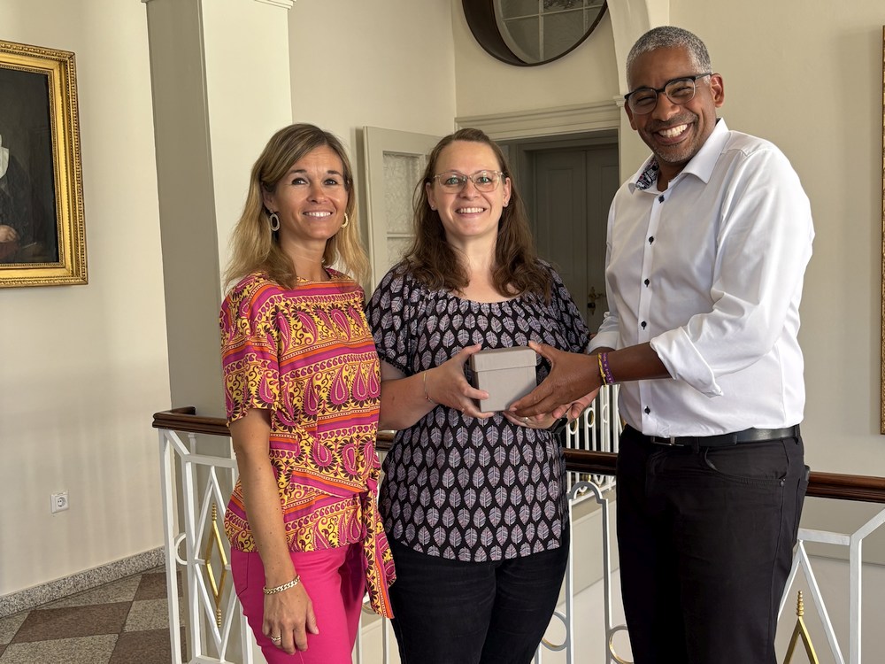 Musikschulleiterin Nicole Staber, Elternbeirats-Vorsitzende Astrid Engelhorn und Oberbürgermeister John Ehret