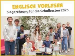 Am Ende hatte Emelie die Nase vorne und gewann den Schulwettbewerb. Auf dem zweiten Platz folgte Rose, auf dem dritten Philippa. In der Kategorie „Native Speaker“ gewann Ruben den ersten Platz. – Wir freuen uns mit allen Gewinnerinnen und Gewinner und sagen: „Herzlichen Glückwunsch!“
