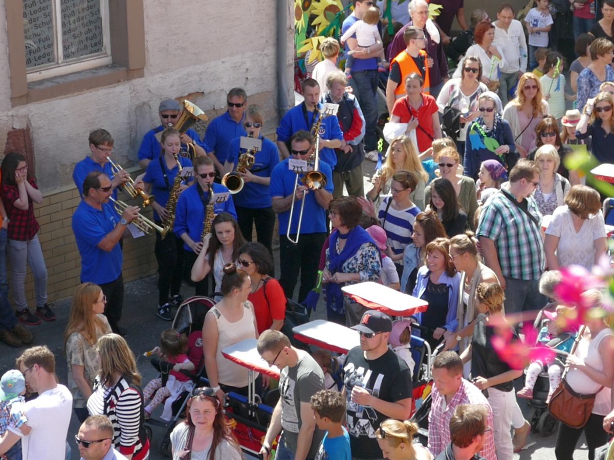 Im Zug liefen die Kinder und Erzieherinnen verschiedener Kindergärten und der 2. Klassen der Turmschule als Blumen oder Gärtner verkleidet mit, wobei sich die jüngsten Kinder aus der Ludwig Uhland Kinderkrippe in ihren großen Transport-Kinderwagen fahren ließen. Der Reitverein Leimen war sogar hoch zu Ross vertreten und stellte die Jugendfeuerwehr vor besondere Anforderungen, da rund um Pferd und Reiter eine spezielle Sicherheitszone mit Seilen auch während des Zuges aufrechterhalten werden musste.