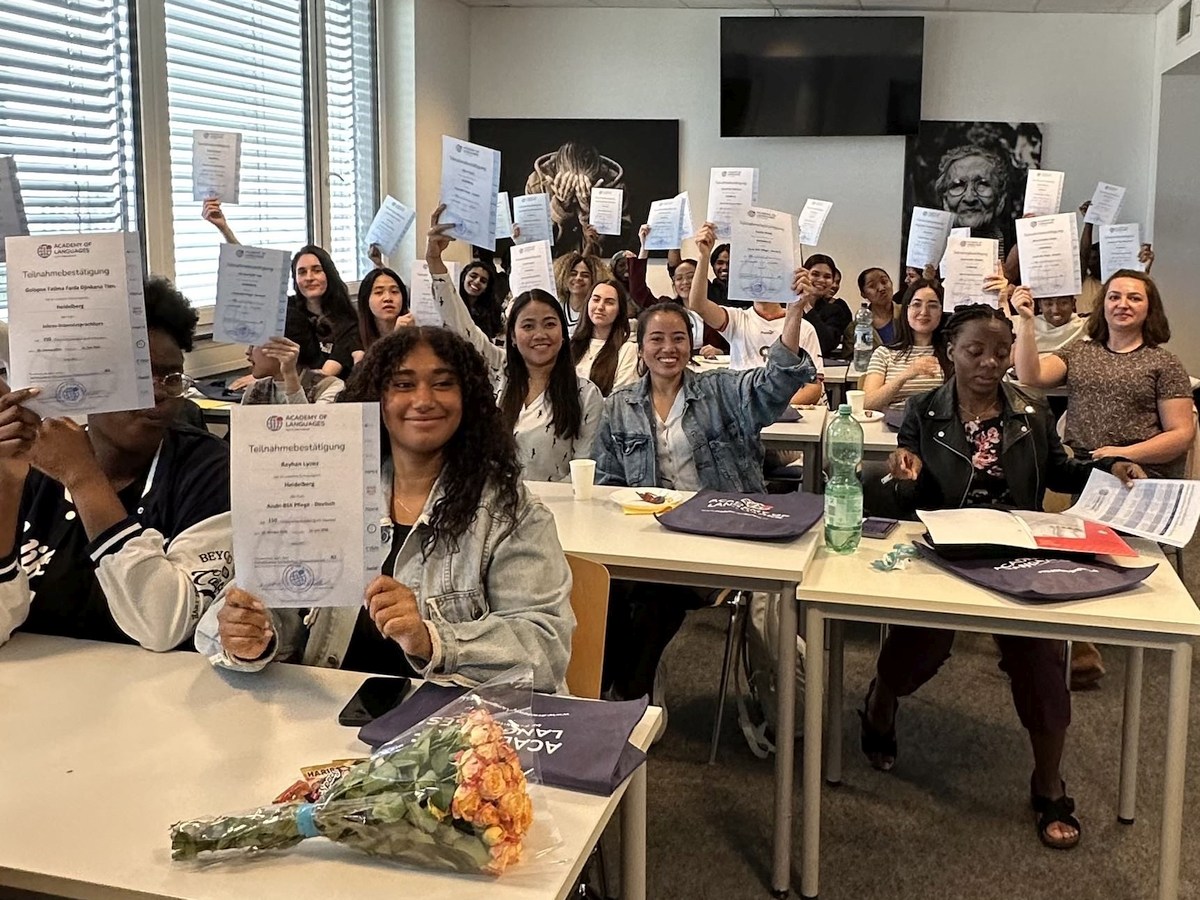 Groß war die Freude bei den Absolventinnen und Absolventen der ersten geförderten Deutschkurse für Auszubildende im Pflegebereich in Heidelberg.