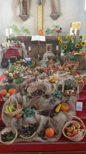 Ein Höhepunkt war der 2. Oktober, an dem der Erntedankaltar der Herz Jesu Kirche errichtet wurde. Die Vorbereitung erfolgte mit großzügigen Spenden der Eltern, wodurch die enge Zusammenarbeit zwischen Kindergarten, Elternhaus und Gemeinde wieder sichtbar wurde. Gemeinsam bestückten und bewunderten alle Kinder den farbenfrohen Altar und dankten mit dem Lied: „Danke für alle guten Gaben“ dem Herrn für seine reiche Ernte.