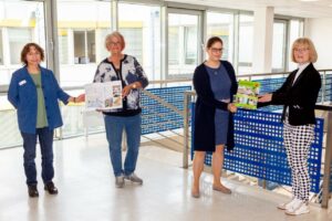 (Foto: Landratsamt Rhein-Neckar-Kreis) Die Vorsitzende des Kreisseniorenrats, Elisabeth Sauer, (rechts) und deren Stellvertreterin Anne Oehne-Marquard (2. v. l.) überreichten Sozialdezernentin Silvia Kempf (2. v. r.) und Gabriele Bandt vom Sozialamt (l.) die ersten Exemplare des neuen Wegweisers. Für das Foto setzten die Beteiligten kurz die Masken ab.