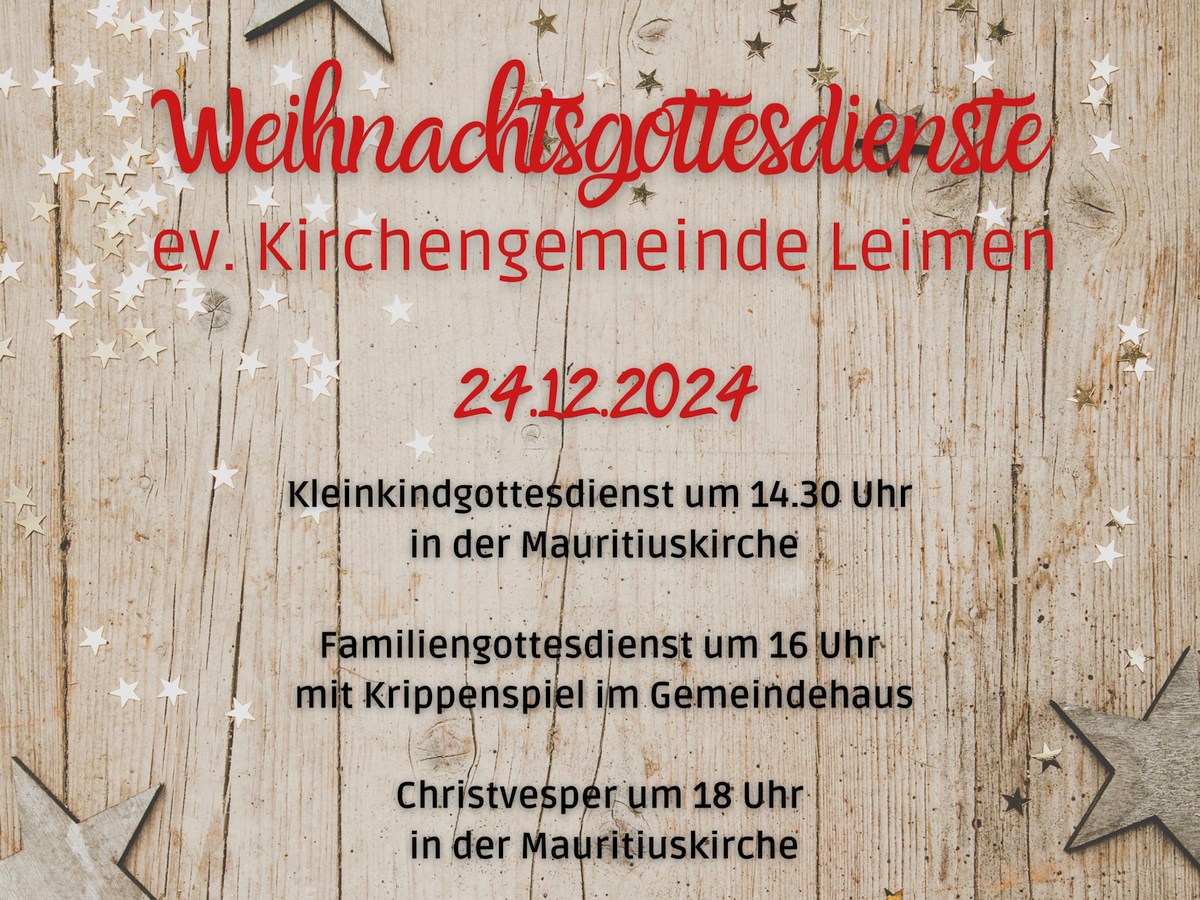 Ev. Gottesdienste und Veranstaltungen zu Weihnachten und Jahresende